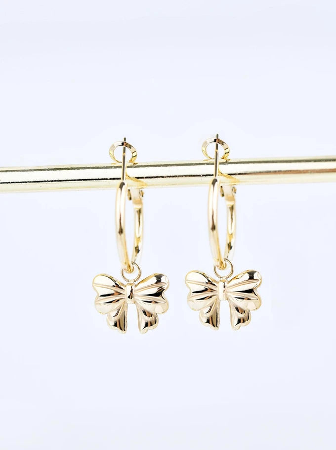 14k Gold Plated Bow Hoop Earrings