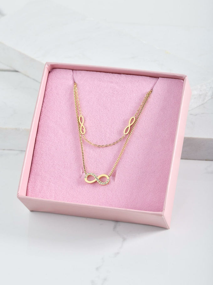 14k Gold Plated Double Chain Necklace with Crystal Infinity Pendants