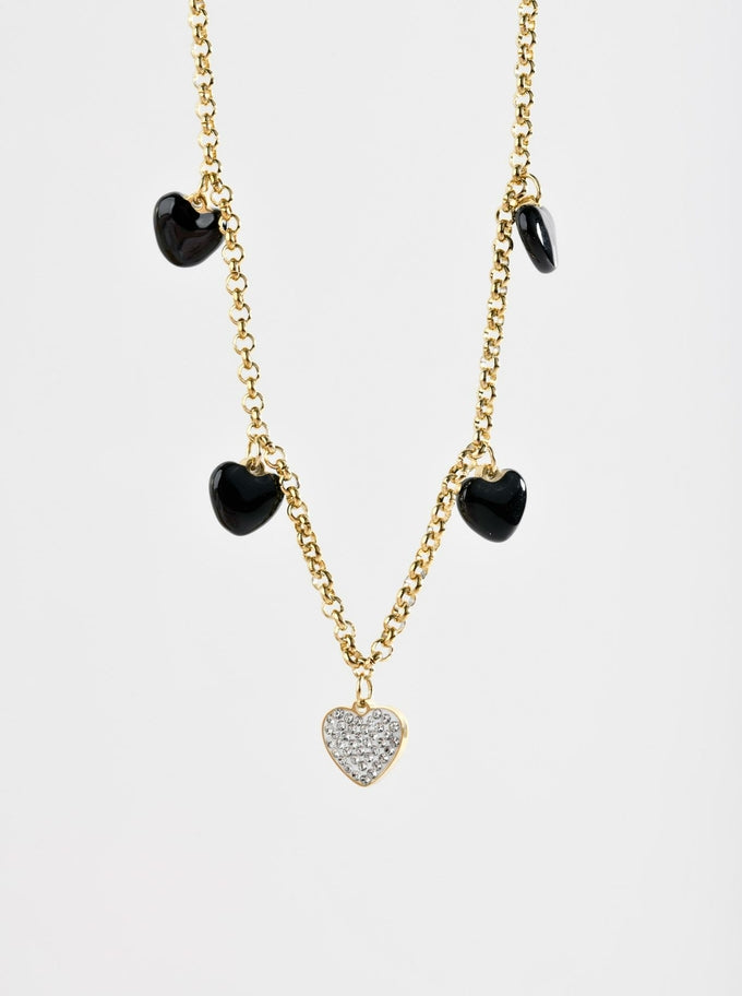 14k Gold Plated Necklace with Black & Crystal Hearts