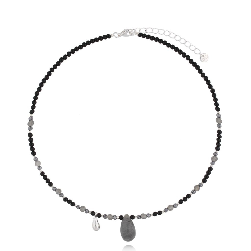 Agate, Hematite and Labradorite Stones Necklace with Gray Nature’s Tear Drop