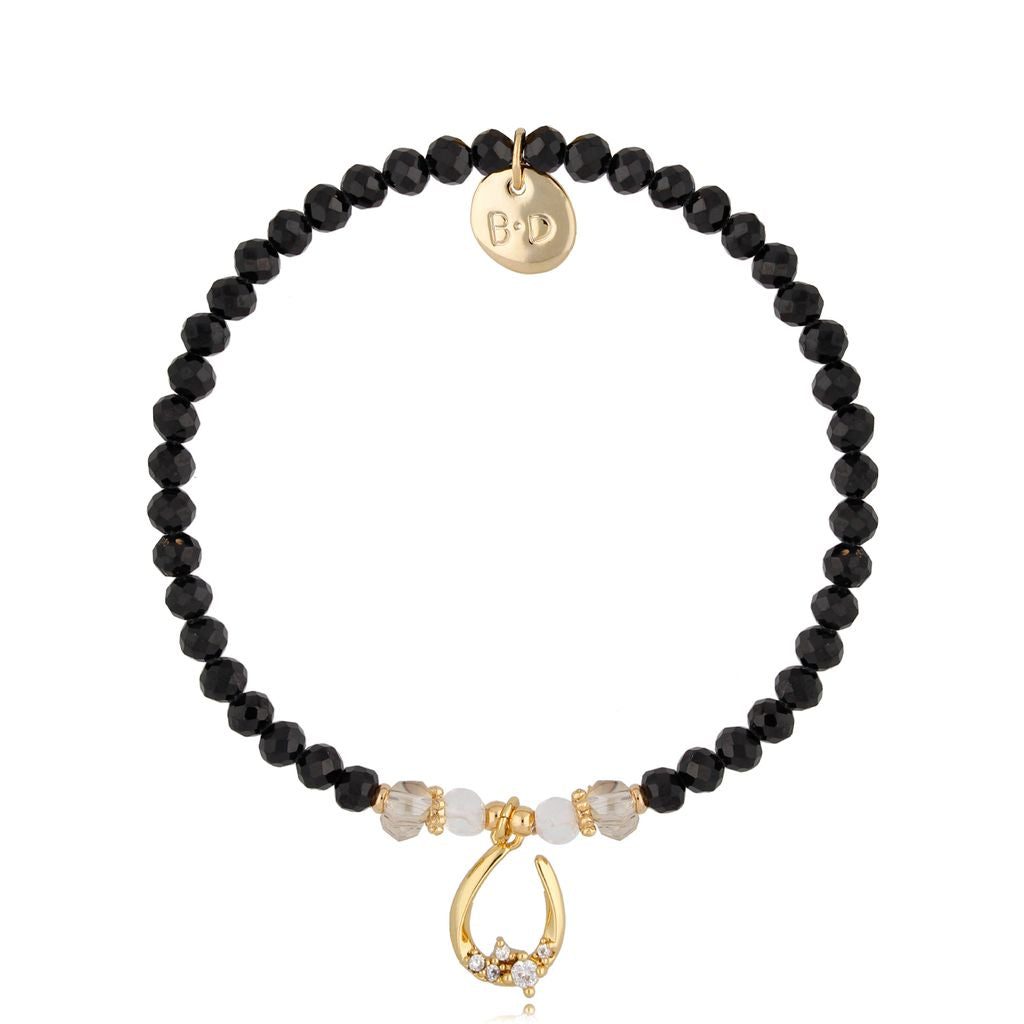 Black Agate Bracelet with Zircon Horseshoe Pendant
