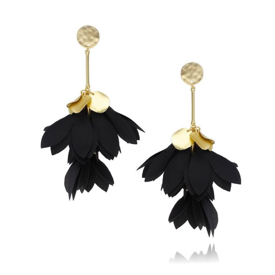 Black Satin Blossom Flower Earrings with Gold Finishing