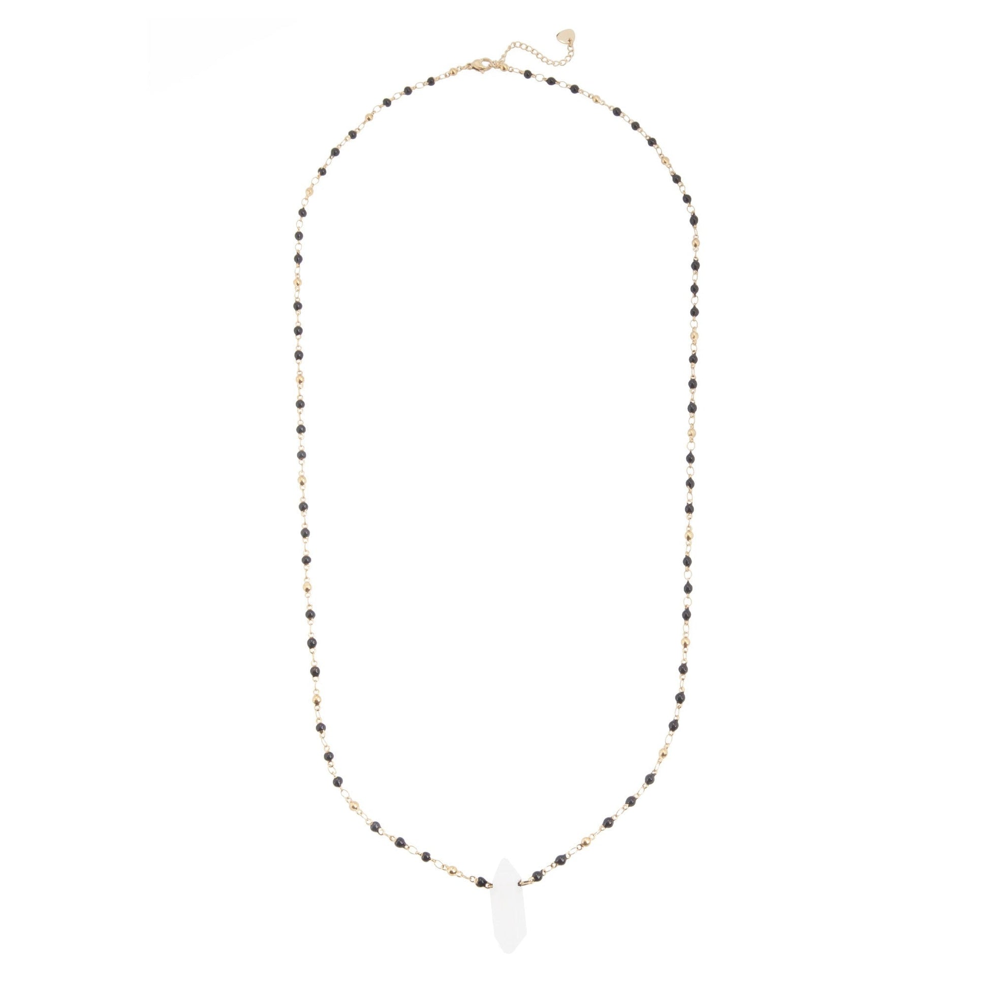 14k Gold Plated Long Beaded Necklace with Himalayan Stone Pendant
