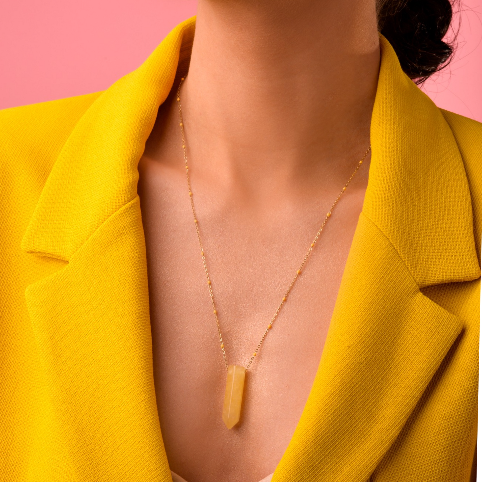 14k Gold Plated Stainless Steel Necklace with Citrine Stone