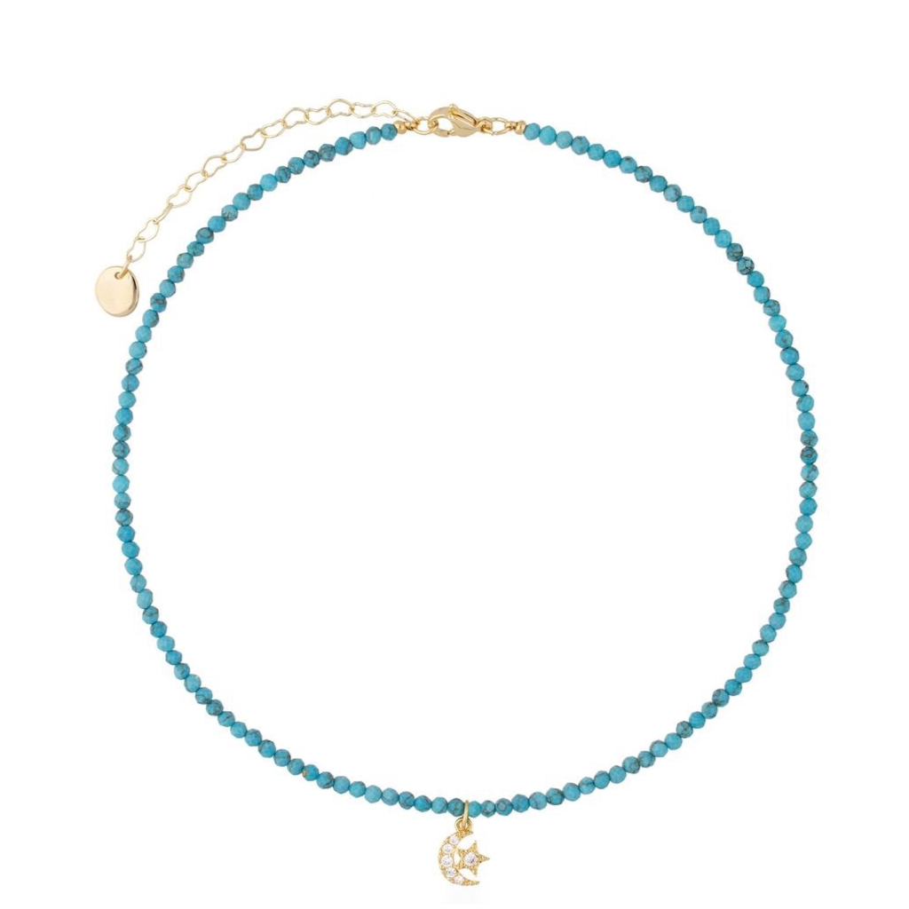 Blue Faceted Stones Necklace with Crystal Moon and Star Pendant