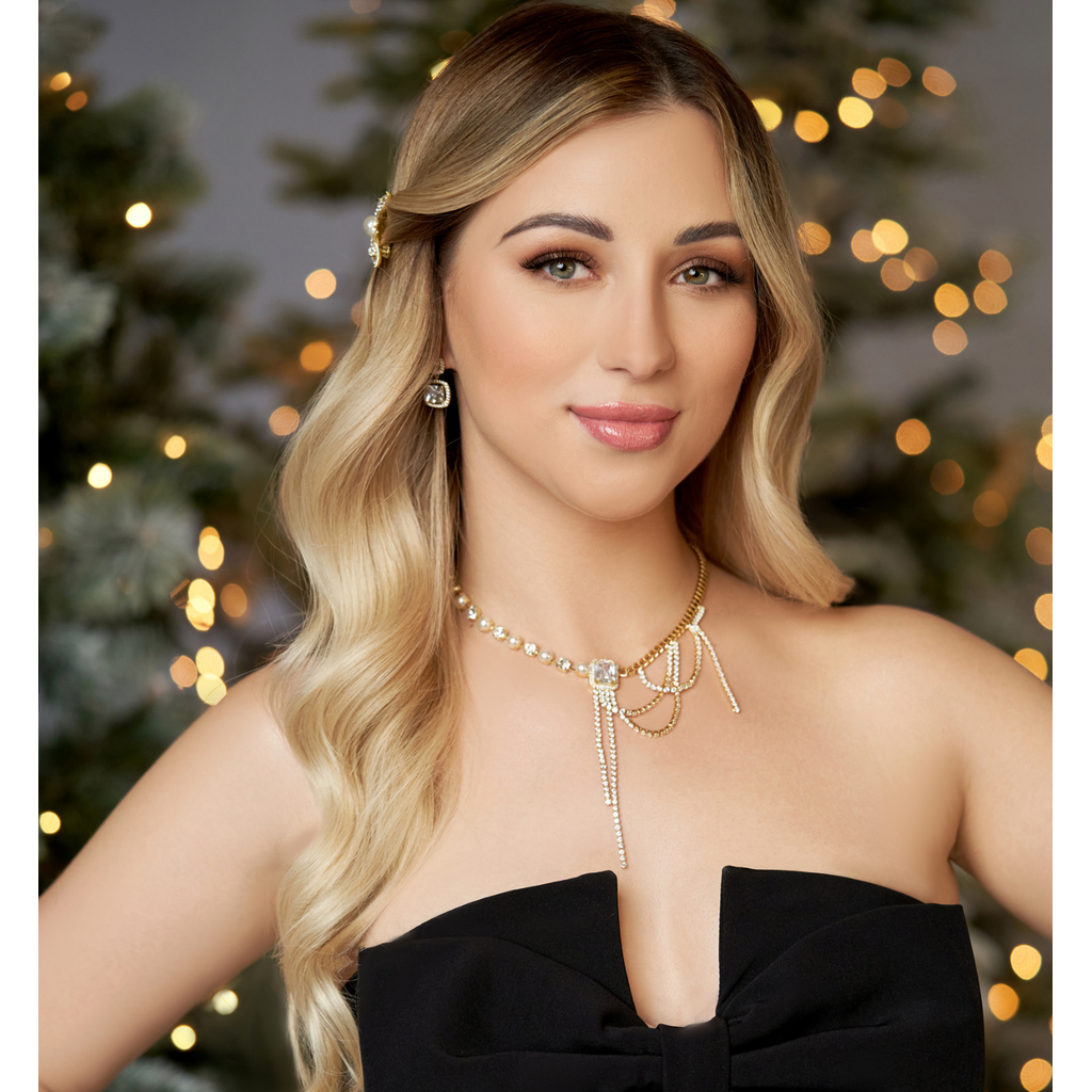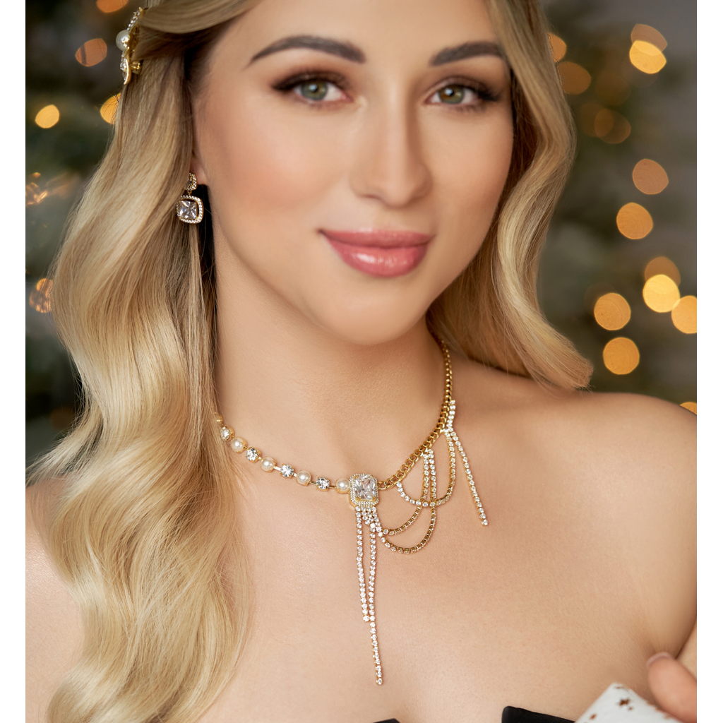 Glamour Crystal Clear & Pearls Fringe Necklace