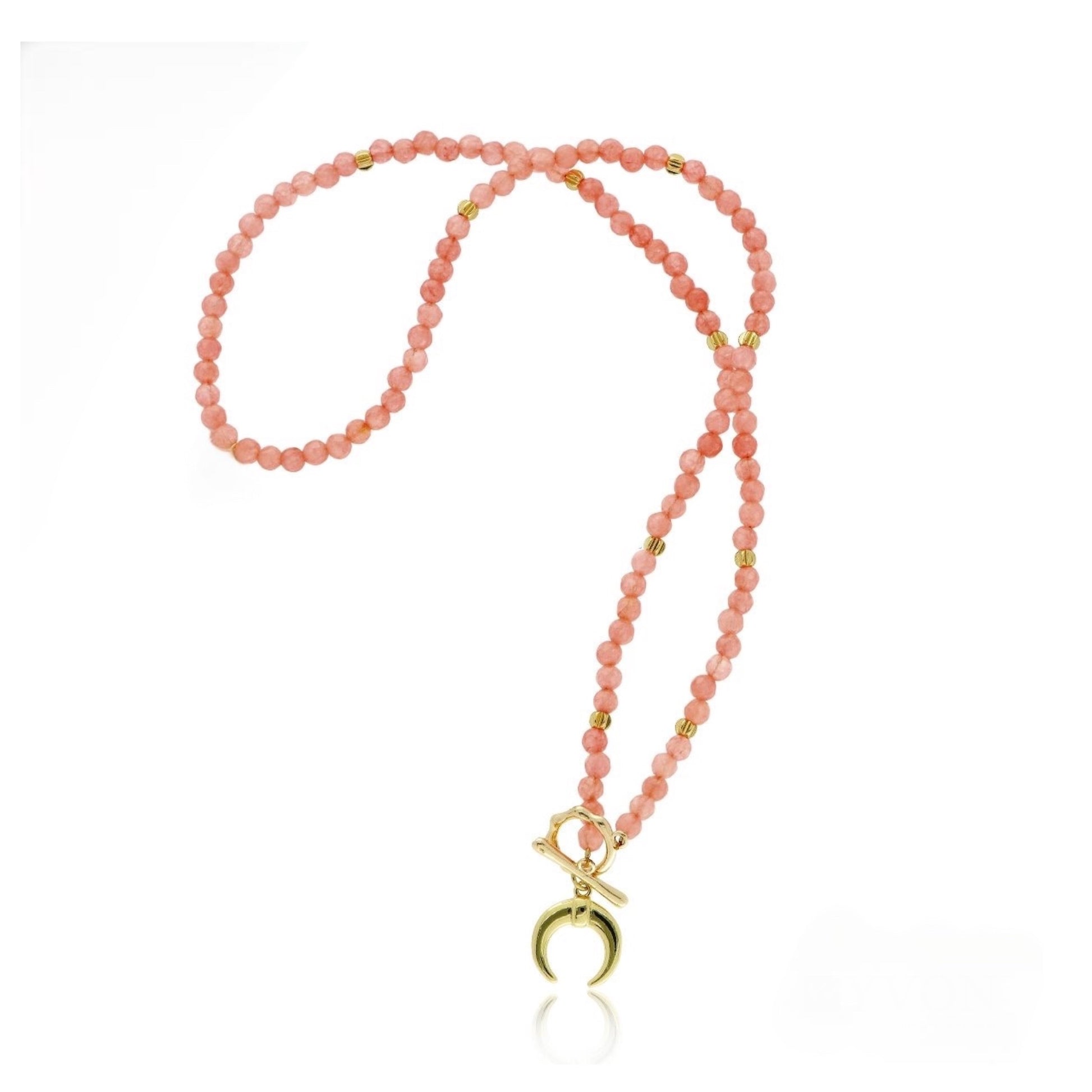 Gold Plated Coral Jadeite Necklace with Moon Pendant