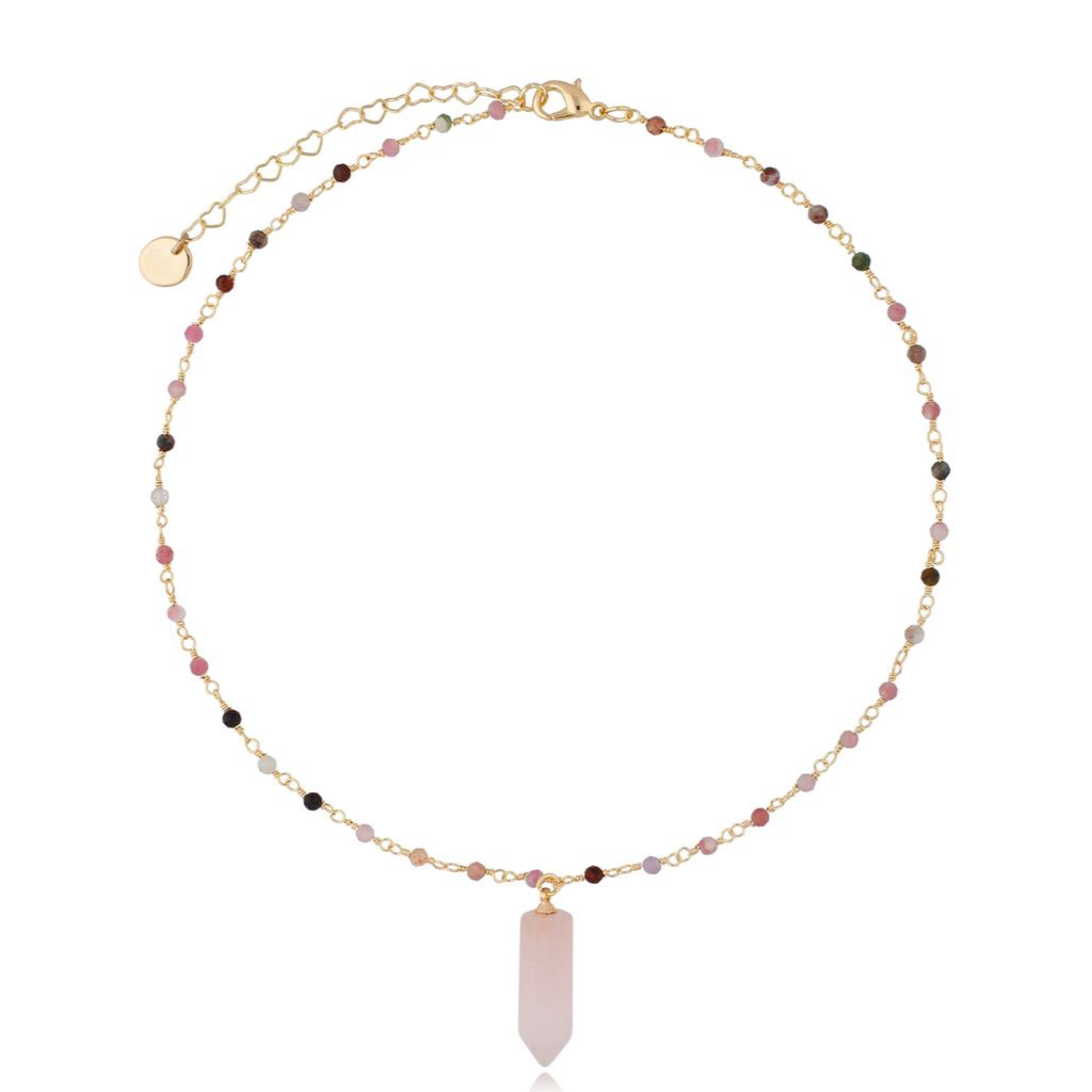 Pink Quartz and Turmaline Stones Necklace with Quartz Pendant