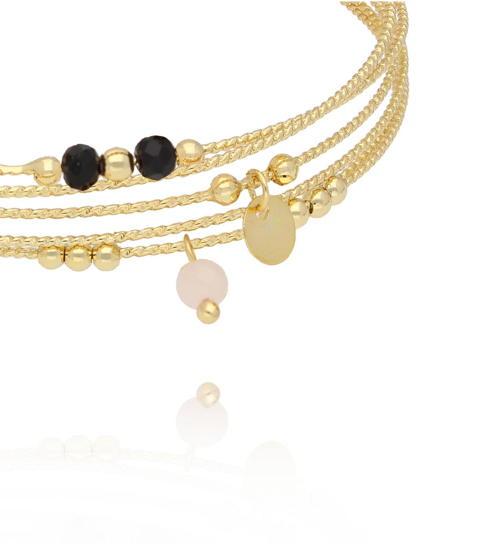 Glam Rock Multi Layer Bracelet with Black & White Beads 0280
