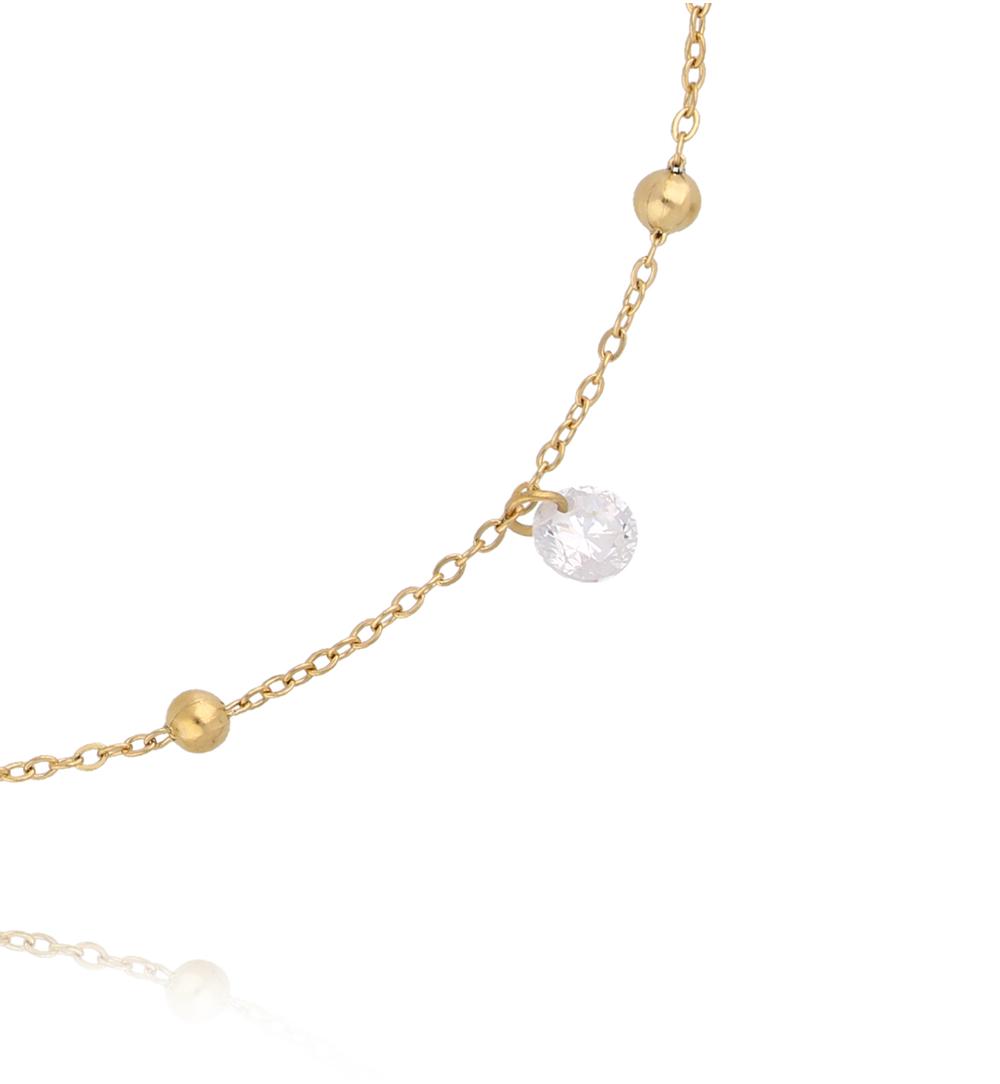 Gold Plated Anklet with Gold Balls and Shiny Crystals