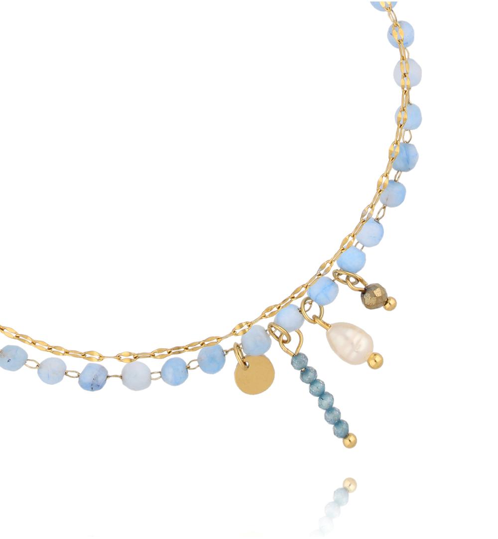 Gold Plated Double Chain Anklet with Blue Jadeite & Pendants Paradise