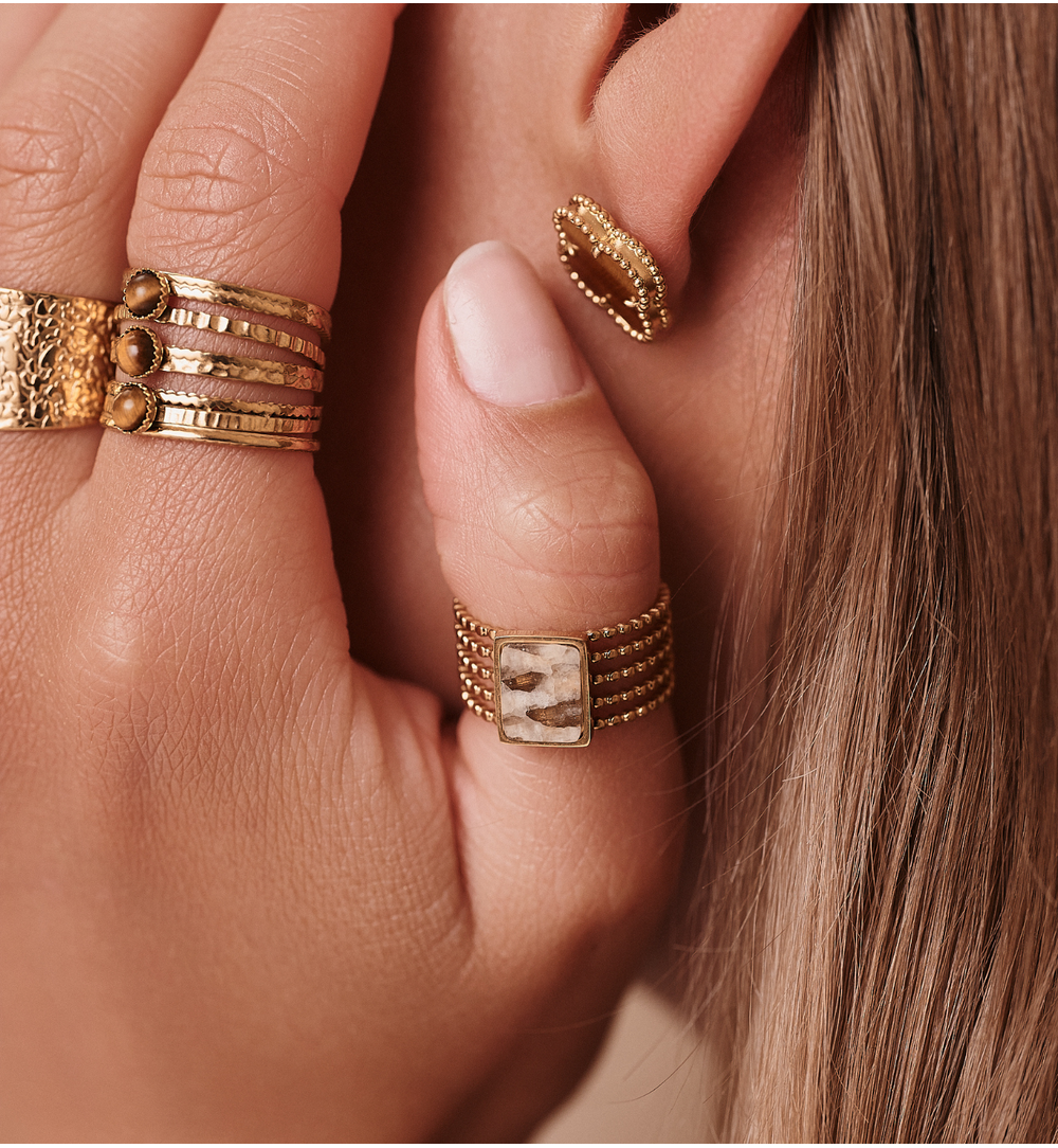 Gold Plated Rectangle Earth Natural Stone Ring 0081