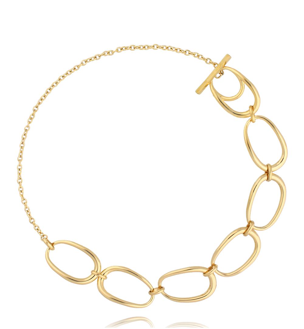 Gold Plated Simple Steel Oval Loop Chain Necklace