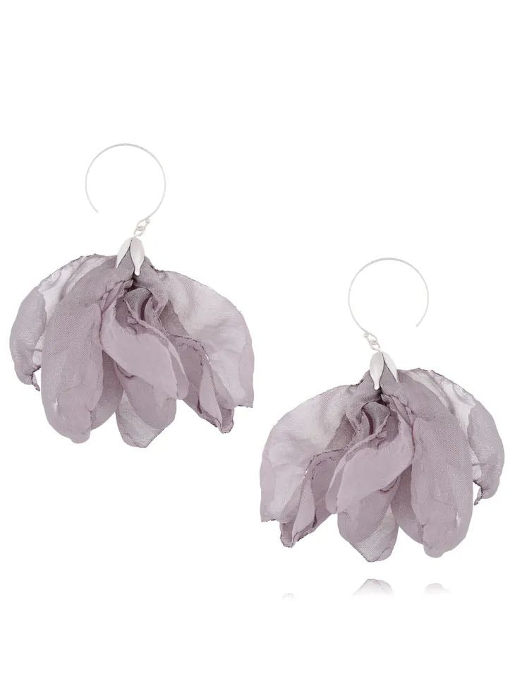 Gray Silk Tulip Flower Earrings with Silver Finishing