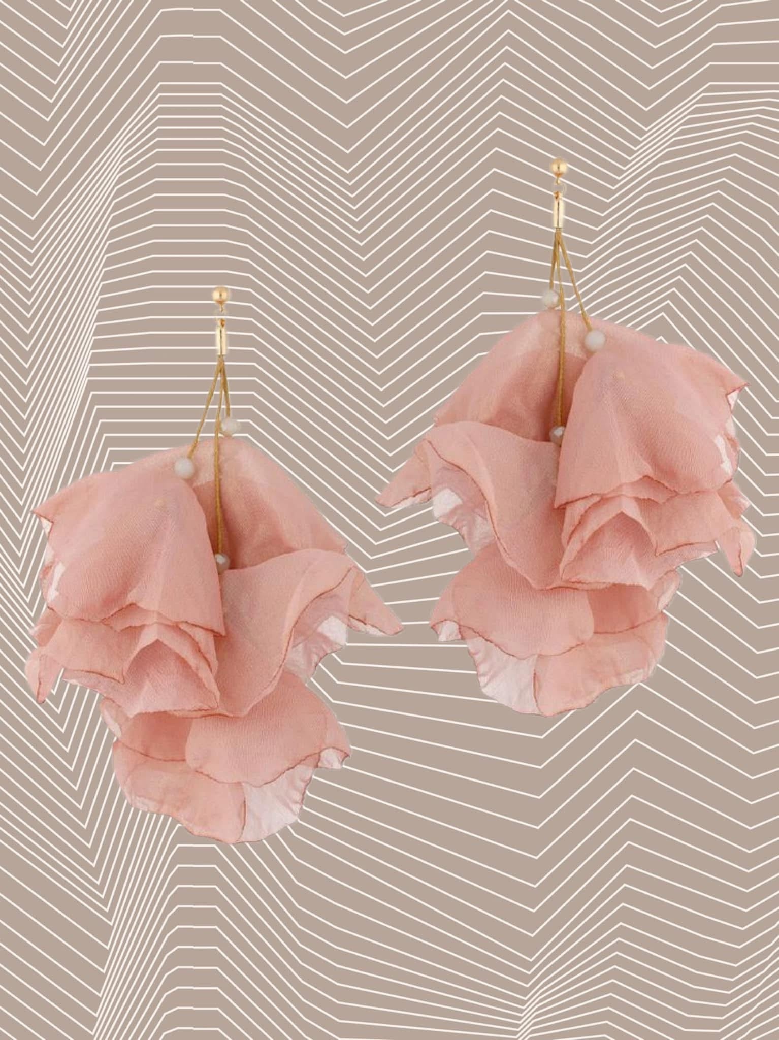 Multi Layer Silk Flower Earrings in Dusty Pink
