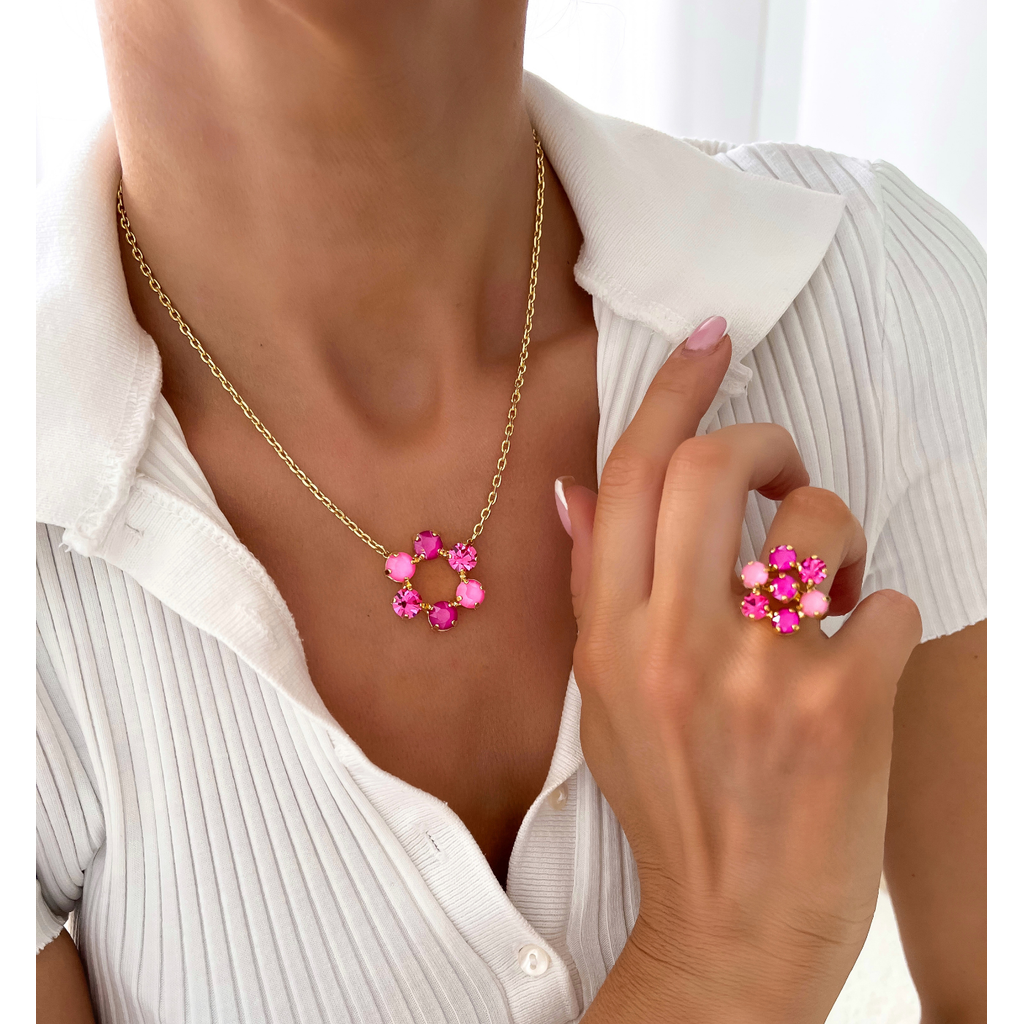 Necklace with Pink and Fuchsia Crystals Flower Pendant