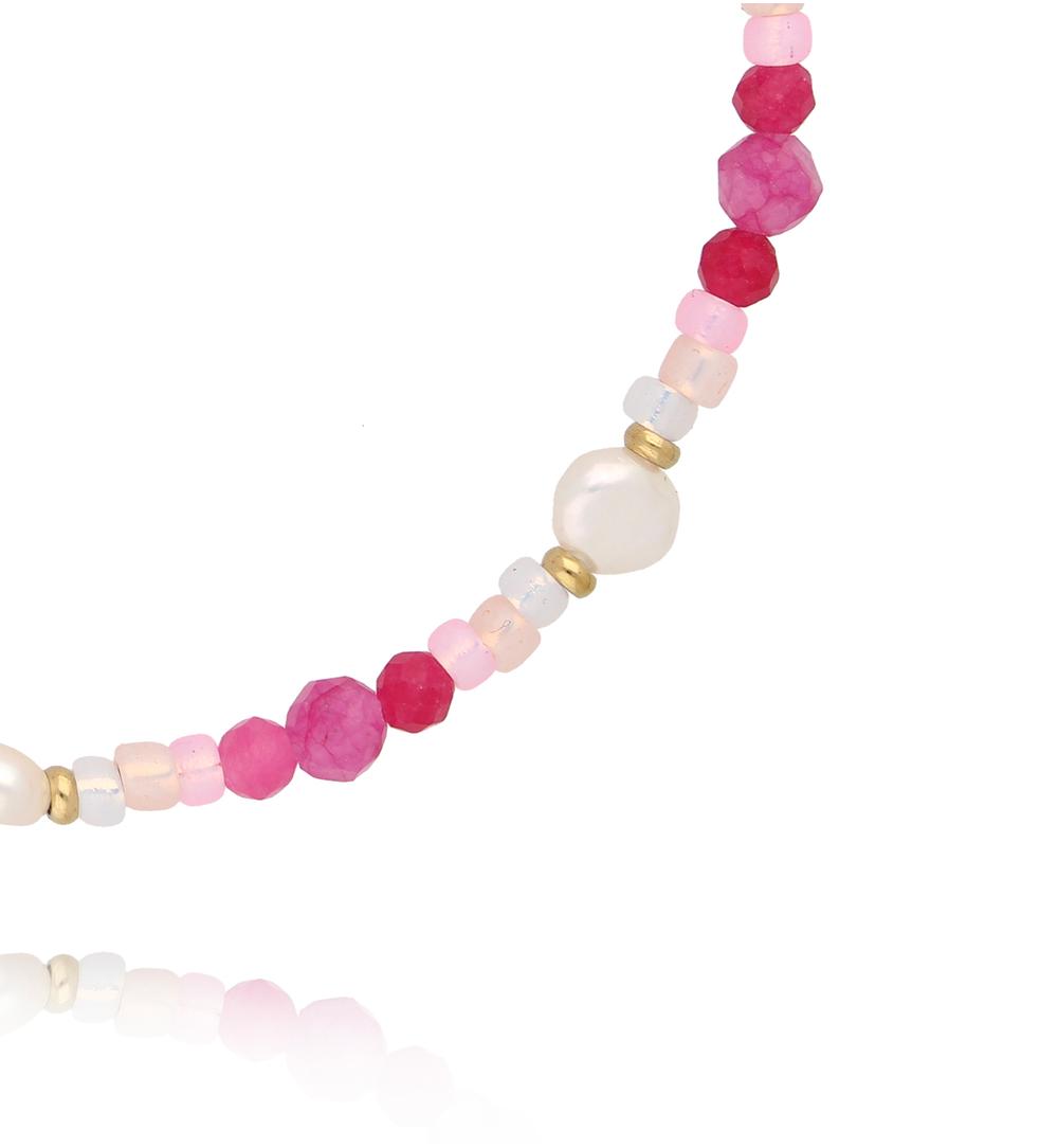 Pink Opal, Pearls and Miyuki Crystals Bracelet