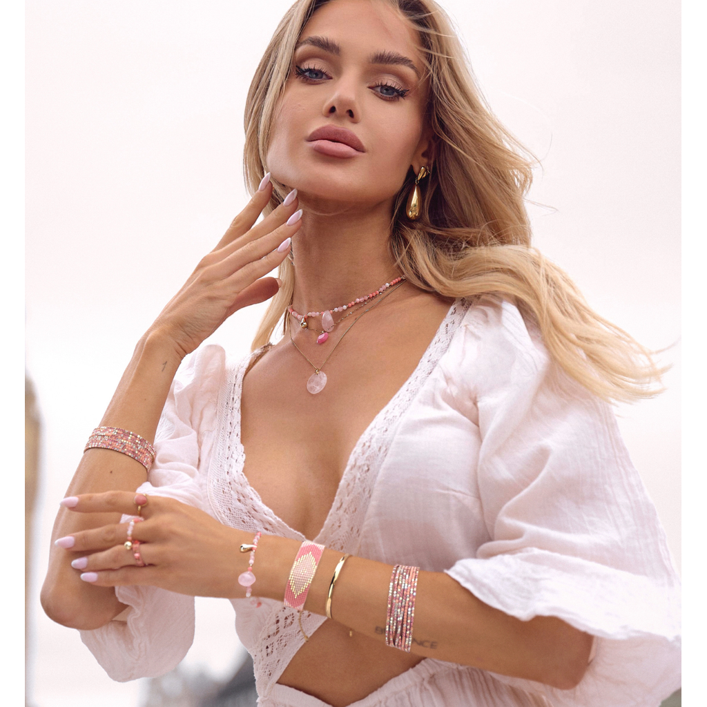 Pink Quartz and Opal Necklace with Gold Nature’s Tear Drop