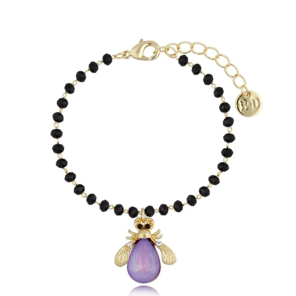 Purple Beetle Bracelet with Black Crystals