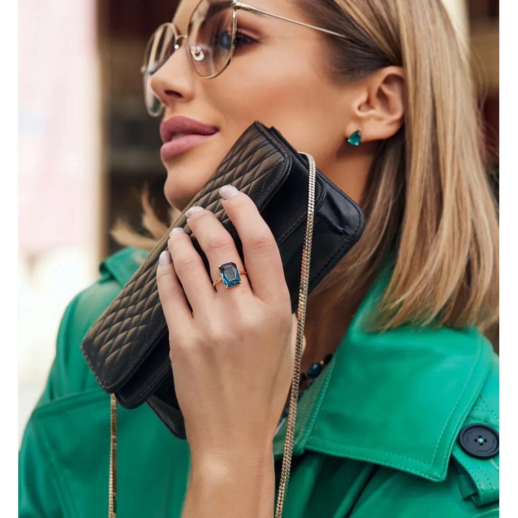 Rose Gold Rectangle Clear Green Self Adjustable Ring