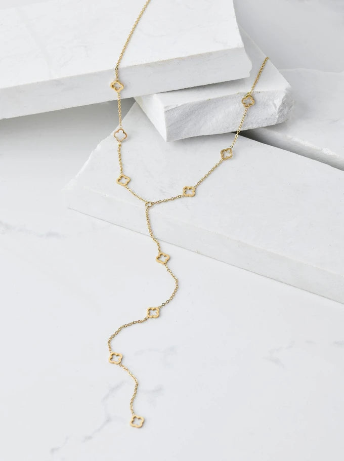 14K Gold Plated Lariat Necklace with Small Open Clovers