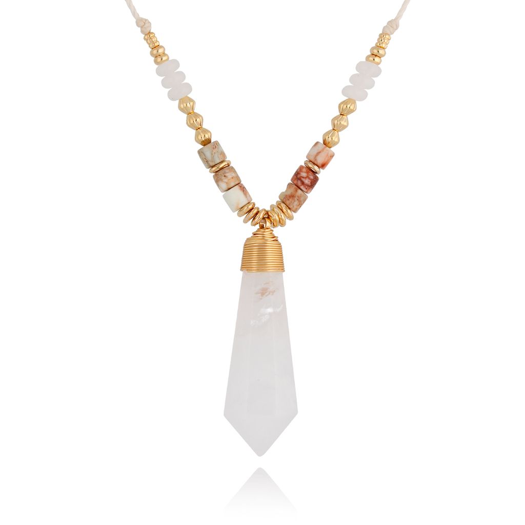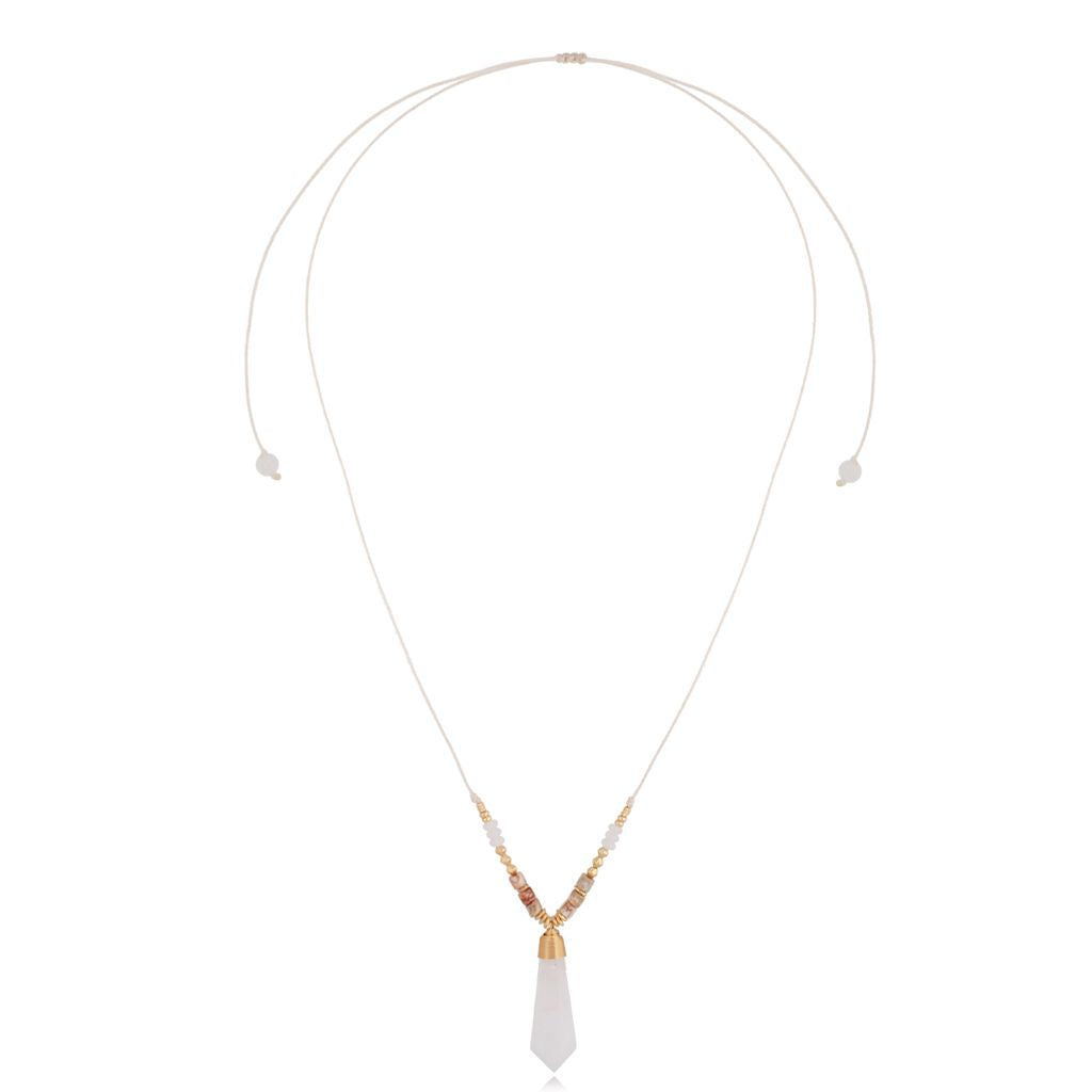 White Himalayan Stone Necklace with Sand Stones on Rope Cord