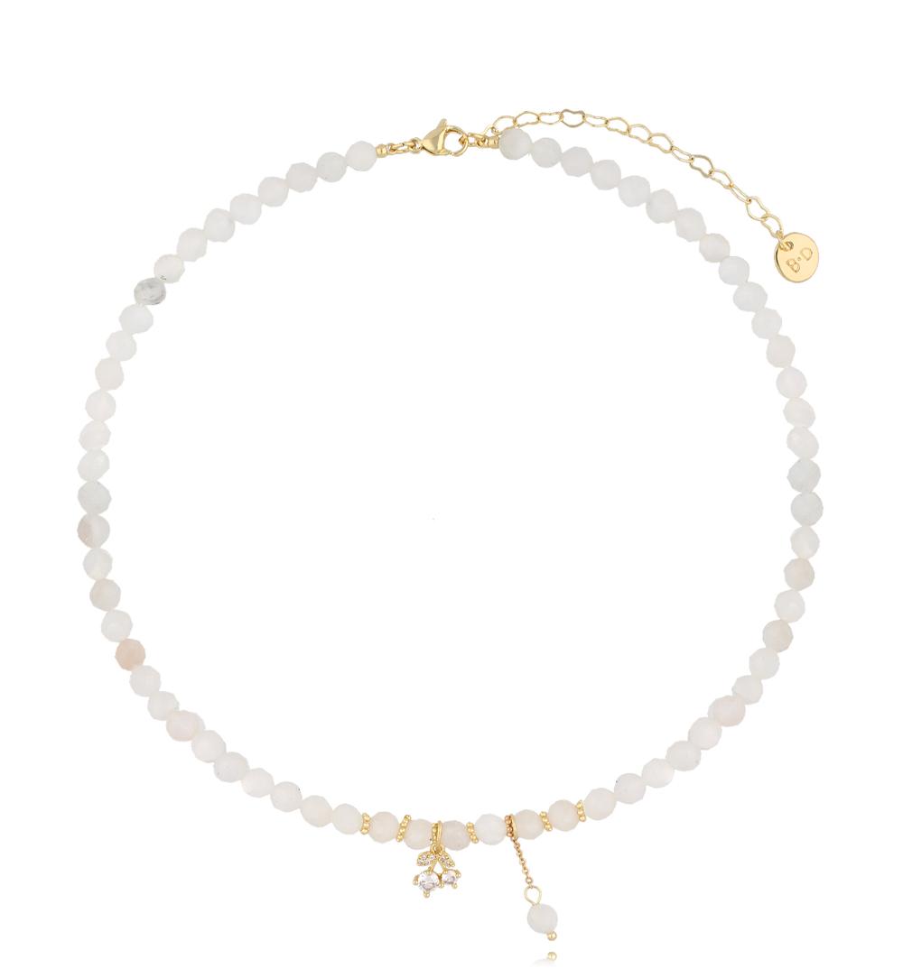 White Moon Stones Necklace with Zircon Cherries and Stone Pendant